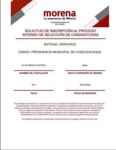 Comunico a ustedes que he solicitado mi inscripción en el proceso interno de selección de candidatos, en una aspiración de poder ser la candidata a la alcaldía de mi amado Cosoleacaque