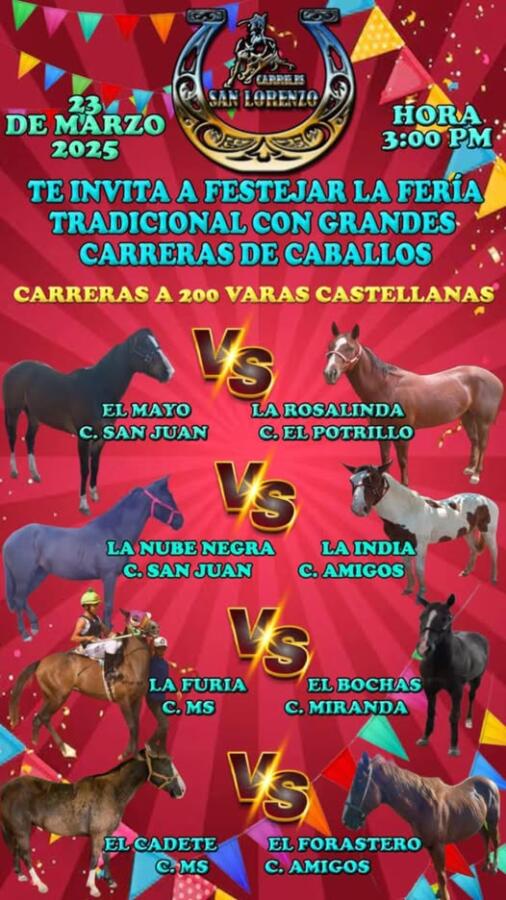 El próximo 23 de marzo de 2025, en punto de las 3:00 de la tarde, se llevarán a cabo emocionantes carreras de caballo como parte de la feria tradicional de Tatahuicapan de Juárez.