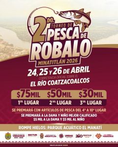 Llega el 2do Torneo de Pesca de Róbalo Minatitlán 2026 y no te lo puedes perder.