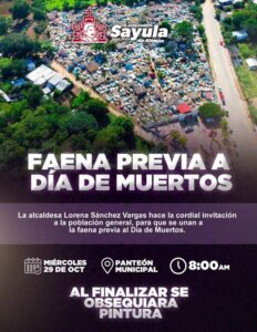 La alcaldesa Lorena Sánchez Vargas, invita a la población en general para que asistan a la faena previa al día de muertos.