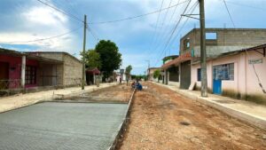 Un ejemplo son las obras que se realizan en nuestro municipio, como lo es la calle Revolución, en la cabecera municipal, donde se lleva a cabo la rehabilitación de la misma, colocando una nueva pavimentación con concreto hidráulico, alumbrado público, guarniciones y banquetas.