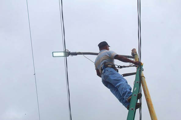 Por iniciativa de la alcaldesa Lorena Sánchez Vargas, el personal realiza la instalación de alumbrado tipo led, cableado y rehabilitación de otros equipos.