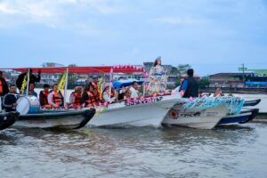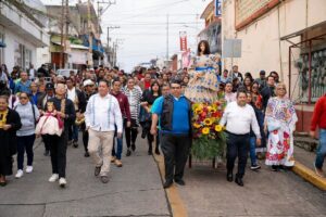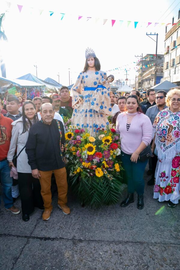 Familias minatitlecas se reúnen para celebrar la procesión de la Virgen de la Candelaria.