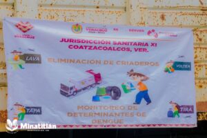 En este acto también estuvieron presentes autoridades del sector salud, entre ellas la Dra. Ileana María Martínez Almogabar, responsable del Centro de Salud Urbano de Minatitlán, quien hizo un llamado a la ciudadanía a tomar conciencia y mantener los patios limpios, evitando acumulaciones de agua que favorezcan la reproducción del mosquito.