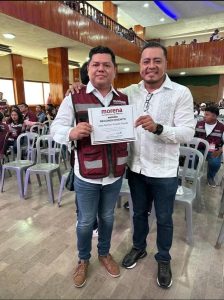 Los reconocimientos fueron entregados por Andrés Manuel López Beltrán, secretario de Organización de Morena, en compañía del licenciado José Ramón Pineda Rueda, enlace del Distrito 14.