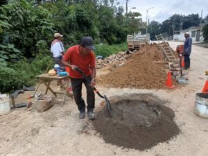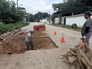 Por instrucciones del alcalde el Lic. Gildardo Maldonado Guzmán, la Dirección de Obras Públicas atendió de manera inmediata el socavamiento provocado por una falla en la línea de drenaje, registrado en la prolongación Juárez, colonia Ferrocarrilera.