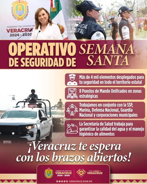 En Veracruz trabajamos para que, en esta Semana Santa, todos disfruten de nuestras playas, ríos, cultura y gastronomía, pero, sobre todo, para que vivan unas vacaciones seguras y memorables.