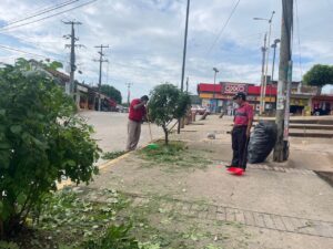 Los colaboradores realizaron la poda de árboles y limpieza en calles con el fin de beneficiar a quienes transitan por estas vías.