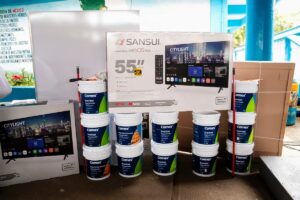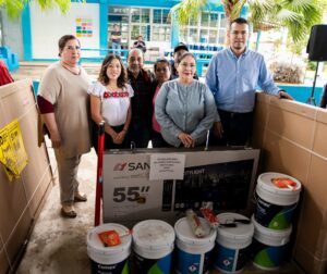 El evento se llevó a cabo en la Escuela Secundaria General No. 4, donde se distribuyeron 184 pantallas, 250 cubetas de pintura, 131 pizarrones, así como otros materiales de mantenimiento y mobiliario escolar.