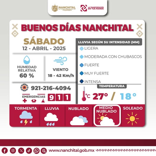 #PronósticodelTiempo ⛅🌞| Buenos días #Nanchital, a continuación presentamos el pronóstico del tiempo para las próximas horas.