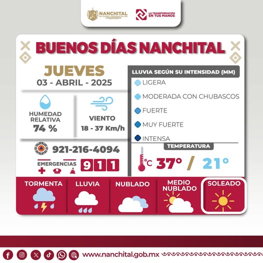 #PronósticodelTiempo | Buenos días #Nanchital, a continuación presentamos el pronóstico del tiempo para las próximas horas. #LaTransformaciónEnTusManos
