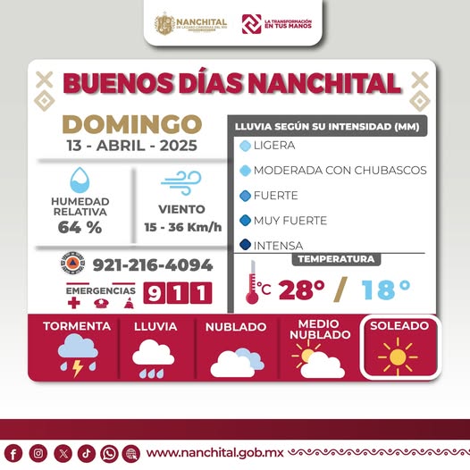 #PronósticodelTiempo | Buenos días #Nanchital, a continuación presentamos el pronóstico del tiempo para las próximas horas. #LaTransformaciónEnTusManos