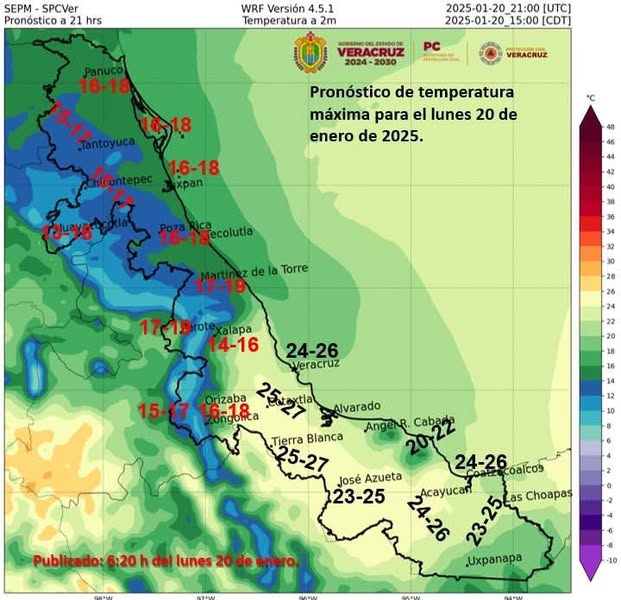 PROTECCIÓN CIVIL DE SOCONUSCO INFORMA Hoy se espera ambiente frío a templado al mediodía en el estado de Veracruz. Aquí el pronóstico para este lunes 20 enero de 2025.