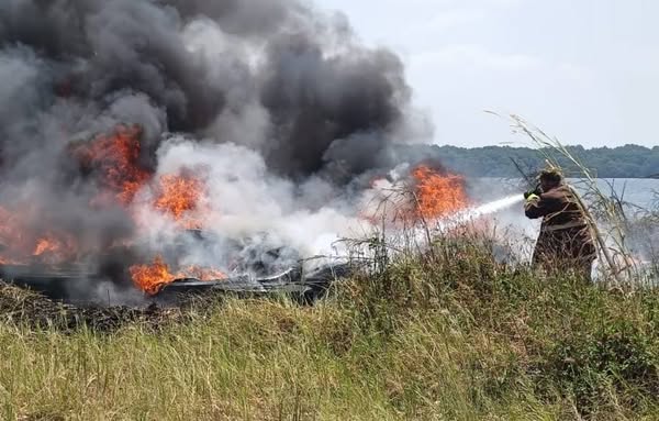 Protección Civil Municipal trabajaron intensamente para sofocar en su totalidad el incendio de pastizales y llantas acumuladas.