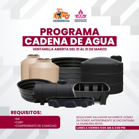 Te invitamos a formar parte del proyecto "Cadena de Agua" De los diversos Tinacos y Bebedores con subsidio, que impulsará el trabajo en nuestro Municipio.