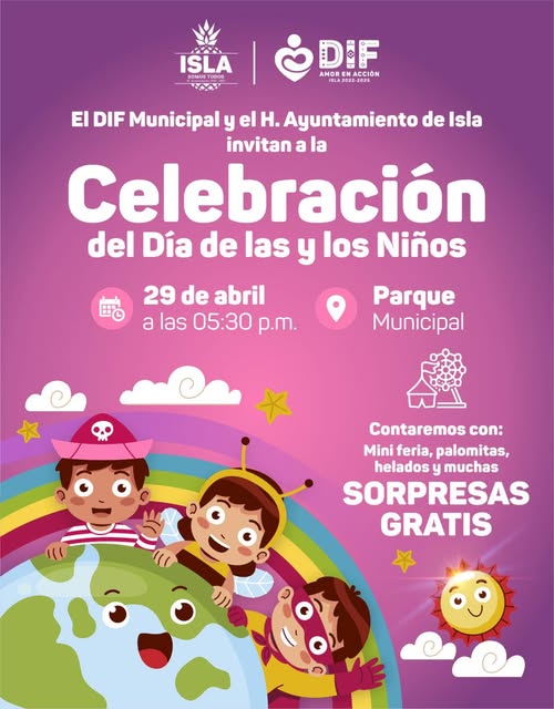 A todas y todos los pequeños isleños los espero el próximo martes 29 de abril en el Parque Municipal para festejar juntos el #DíaDeLasYLosNiños, en una MINI FERIA