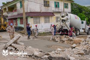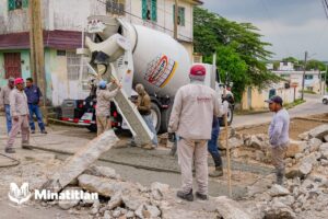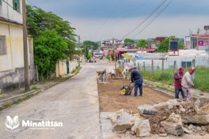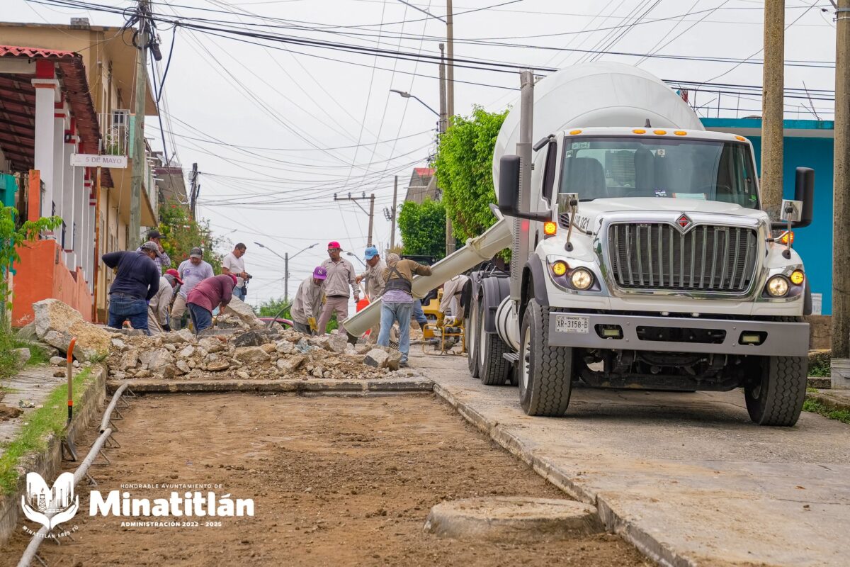 Minatitlán, Ver.- Dando continuidad al mejoramiento de las vialidades en Minatitlán, el gobierno municipal que encabeza la Dra. Carmen Medel Palma, a través de la Dirección de Obras Públicas, llevó a cabo trabajos de vaciado de concreto en la calle Pino Suárez, entre Centenario y Ejército Mexicano, en la colonia Santa Clara.