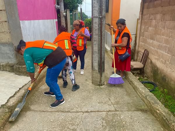 Por instrucciones de la alcaldesa Lorena Sánchez Vargas, un grupo de mujeres realiza trabajos de limpieza en todas las calles de Sayula de Alemán, con el fin de mantener un municipio limpio y seguro.
