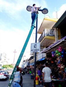 Sayula de Alemán, mas alumbrado y seguro con la administración de la alcaldesa Lorena Sánchez Vargas.