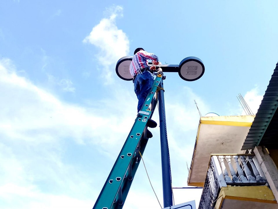 Recientemente el equipo de alumbrado público realizó la instalación y rehabilitación de luminarias en la calle Benito Juárez.