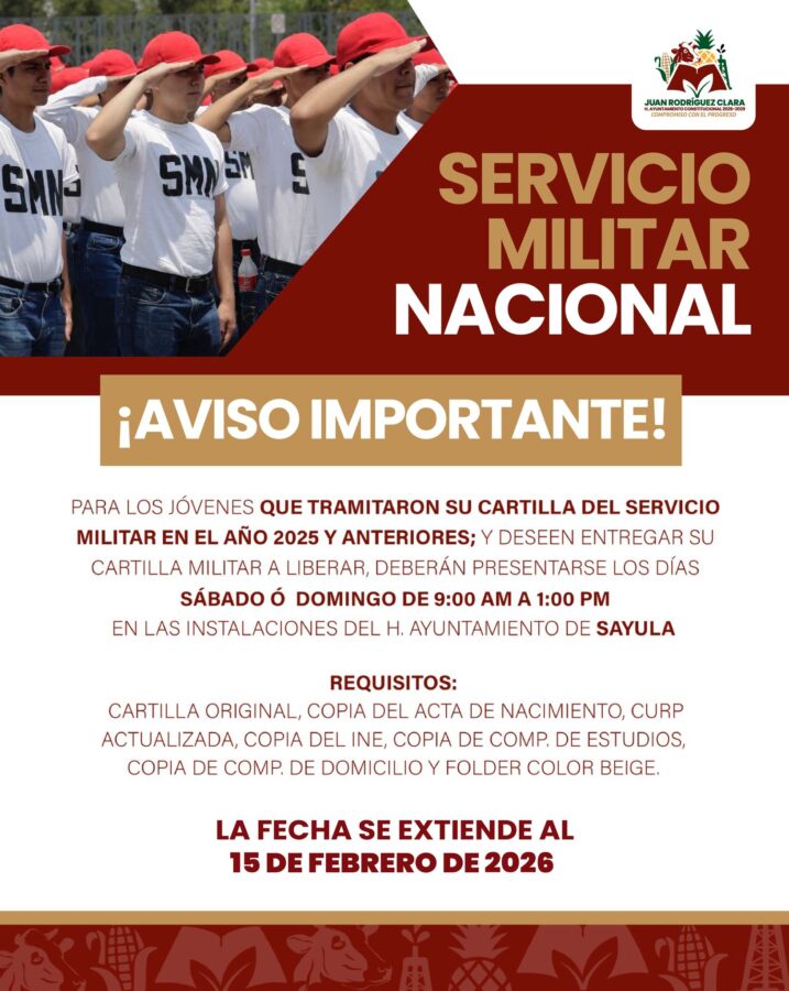 Se informa que se extiende la fecha para entregar a liberar la Cartilla del Servicio Militar Nacional.