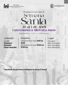 Durante el lunes, martes y Miércoles Santo se realizarán procesiones, laude y una representación teatral en el atrio de la Parroquia Preciosa Sangre de Cristo; al concluir, se llevará a cabo el tradicional Tapalewui.