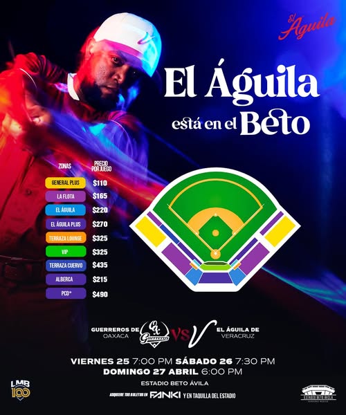 Hoy jugamos el tercero de la serie en el Estadio Beto Ávila Veracruz ante Guerreros de Oaxaca . 𝐀 𝐋𝐀𝐒 𝟔𝐏𝐌 𝐒𝐄 𝐂𝐀𝐍𝐓𝐀 𝐄𝐋 𝐏𝐋𝐀𝐘𝐁𝐀𝐋𝐋 Venta de boletos en taquilla del estadio a partir de las AM y en línea en https://fanki.com.mx/en/El_%C3%81guila_de_Veracruz #VolandoAlto