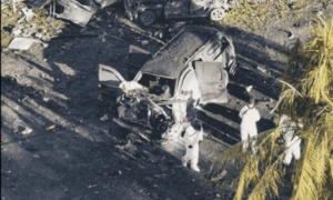 Autoridades federales confirmaron que el atentado dejó un saldo de seis personas muertas, entre ellas policías comunitarios y dos ocupantes del vehículo.
