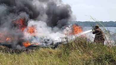 Protección Civil Municipal trabajaron intensamente para sofocar en su totalidad el incendio de pastizales y llantas acumuladas.