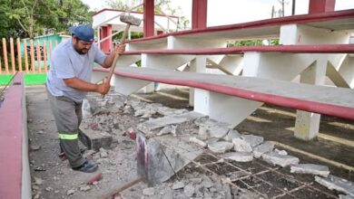 Siguiendo las indicaciones de la Alcaldesa Esmeralda Mora Zamudio, este día personal de la Dirección de Servicios Municipales inició con los trabajos de reparacion en la Unidad Deportiva Lazaro Cardenas del Río.