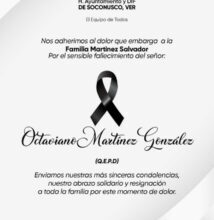 El Gobierno Municipal de Soconusco, Ver., envía sus condolencias a la Mtra. Elizabeth Martínez Fuentes Delegada del Fraccionamiento Santa Cruz,…