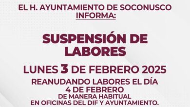 AVISO IMPORTANTE Suspensión de labores en oficinas del Ayuntamiento y DIF Municipal el día lunes 03 de febrero 2025, día…